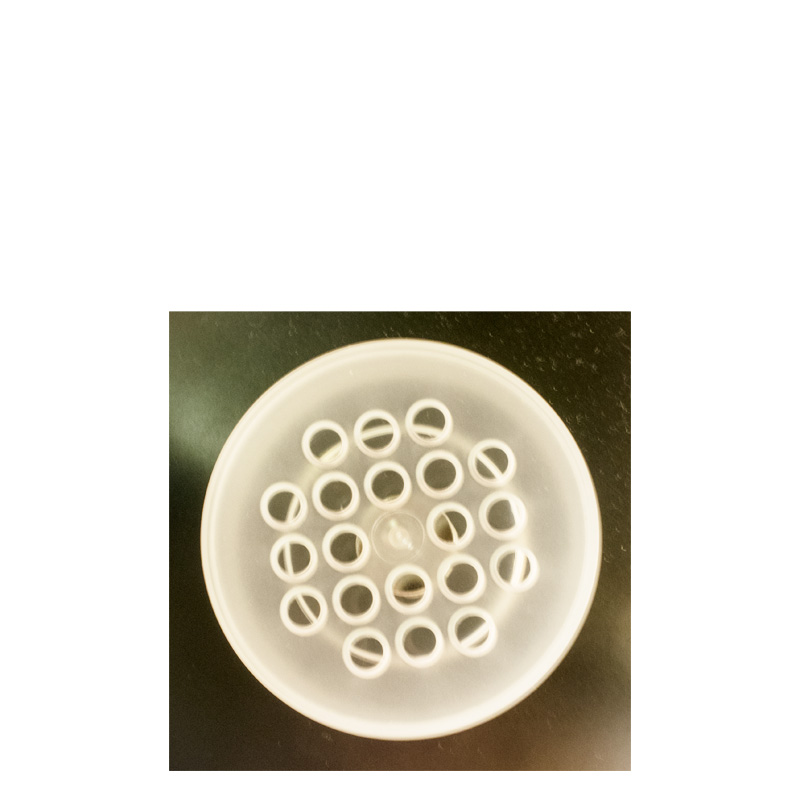 Behållare av i plast med neodymiummagnet och 21 hål. Utrustad med snäpplock som håller innehållet på plats oavsett placering. Något större än behållare Small. Det större antalet hål innebär att mer doft frigörs vid t.ex. inlärning.