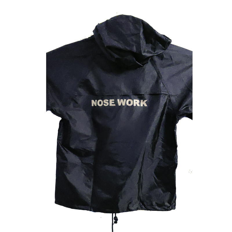 En regnjacka du kan få med egen text. T.ex. så kan du får dem med Nose Work Instruktör, tävlingsledare eller någon annan text.